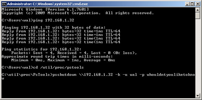 command | psshutdown \\<host> -u <usr> -p <pwd> -k |
